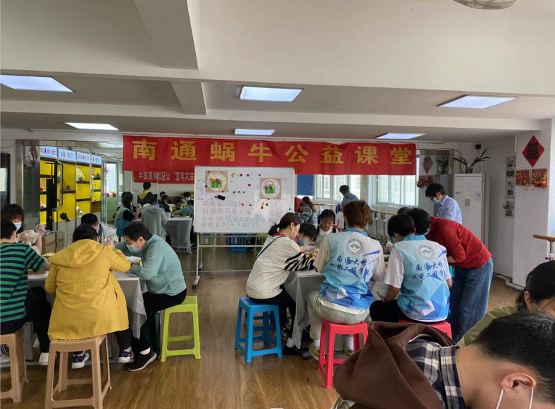 5月14日,yl23455永利官网红十字志愿团队前往南通欢腾蜗牛助残公益服务中心参与公益课堂活动。